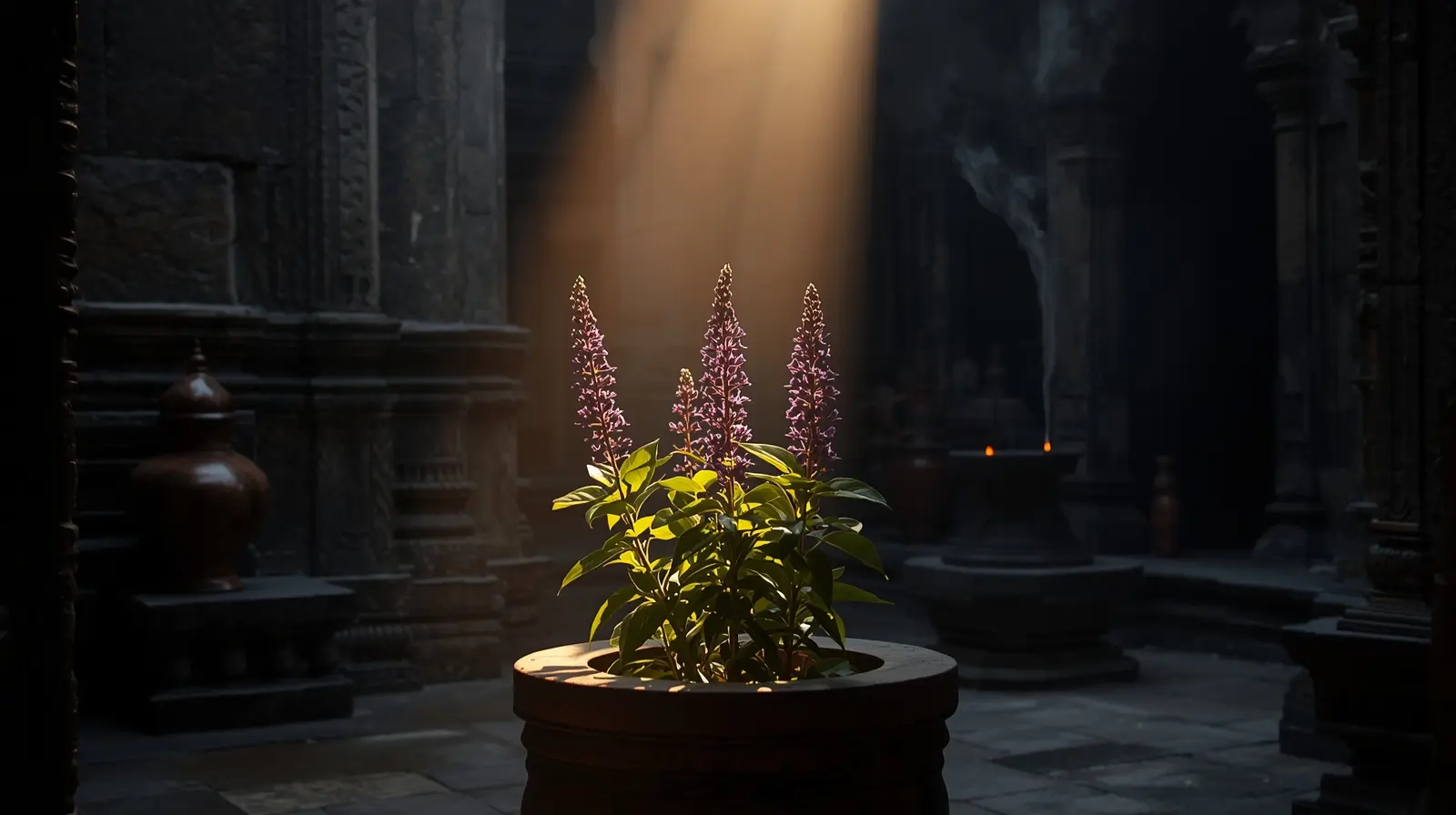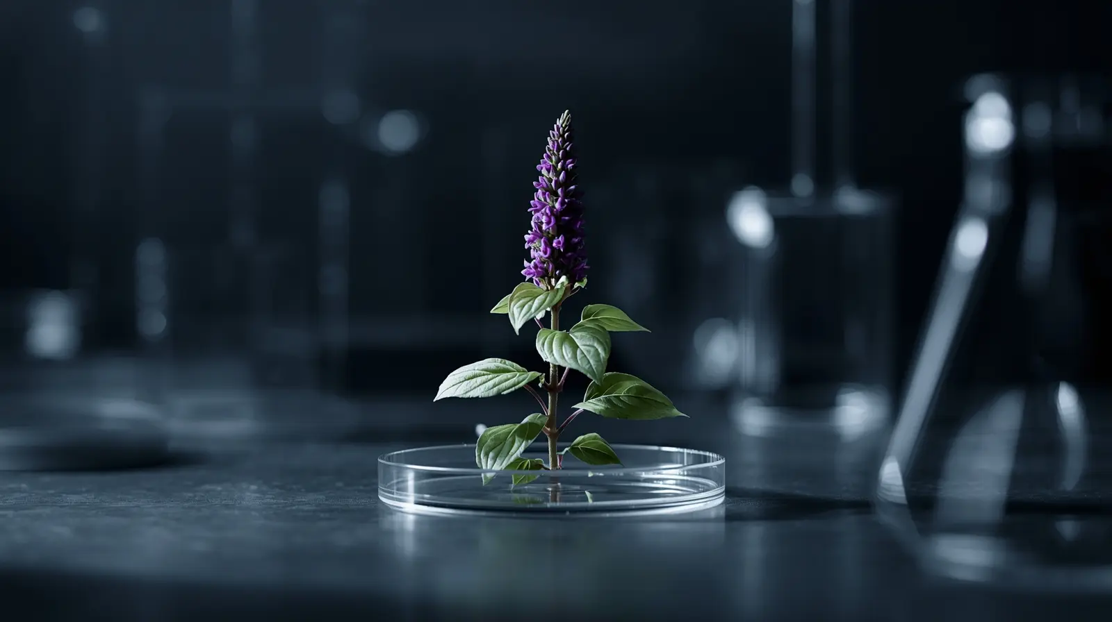 Holy Basil sits between them — clear, light, and steady.